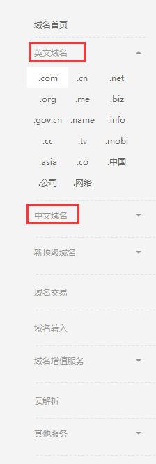 點(diǎn)擊 進(jìn)入到域名種類查詢界面。