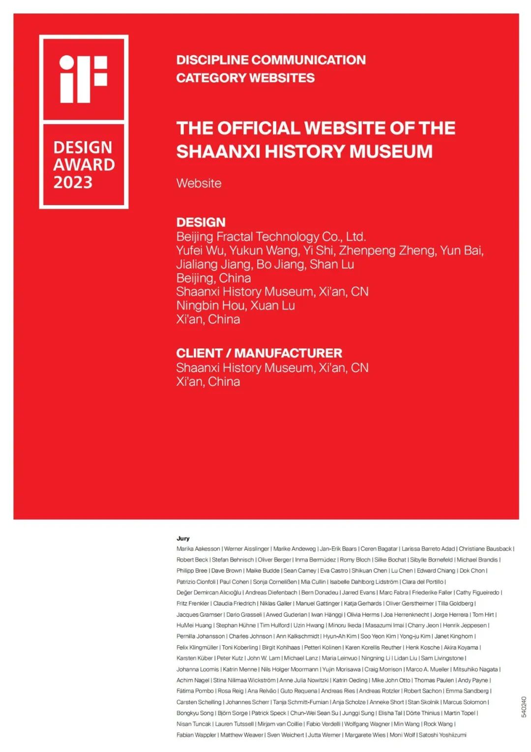 由北京分形科技有限公司設計開發(fā)的【陜西歷史博物館官方網站】榮獲2023年iF設計獎!